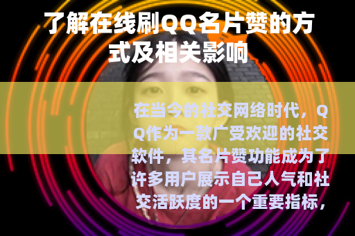 在当今的社交网络时代,QQ作为一款广受欢迎的社交软件,其名片赞功能成为了许多用户展示自己人气和社交活跃度的一个重要指标,而在线刷QQ名片赞也随之成为了一个热门话题,不少人对其充满了好奇与兴趣。