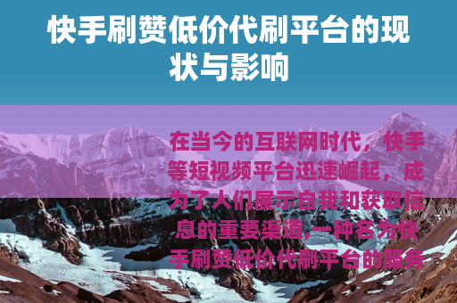 在当今的互联网时代,快手等短视频平台迅速崛起,成为了人们展示自我和获取信息的重要渠道,一种名为快手刷赞低价代刷平台的服务也悄然出现。