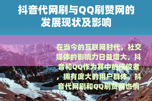 在当今的互联网时代,社交媒体的影响力日益增大,抖音和QQ作为其中的佼佼者,拥有庞大的用户群体,抖音代网刷和QQ刷赞网也悄然兴起,成为了一个备受关注的现象。