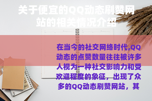 在当今的社交网络时代,QQ动态的点赞数量往往被许多人视为一种社交影响力和受欢迎程度的象征,出现了众多的QQ动态刷赞网站,其中一些以便宜的价格吸引着大量用户。