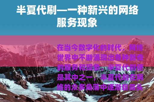 在当今数字化的时代,网络世界中不断涌现出各种新奇的服务和现象,半夏代刷便是其中之一,半夏代刷在网络的众多角落中逐渐崭露头角,吸引了不少人的关注。