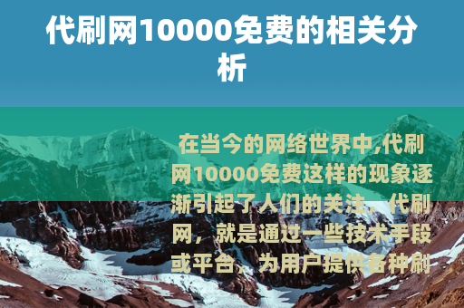 在当今的网络世界中,代刷网10000免费这样的现象逐渐引起了人们的关注,代刷网,就是通过一些技术手段或平台,为用户提供各种刷量服务,比如刷粉丝、刷点赞、刷评论等,而这里所说的10000免费则是一种极具吸引力的营销噱头。