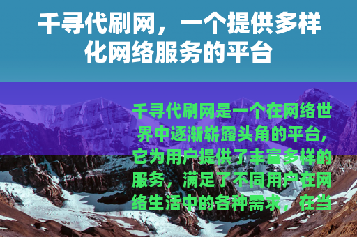 千寻代刷网是一个在网络世界中逐渐崭露头角的平台,它为用户提供了丰富多样的服务,满足了不同用户在网络生活中的各种需求。