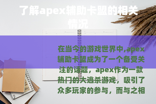 在当今的游戏世界中,apex辅助卡盟成为了一个备受关注的话题,apex作为一款热门的大逃杀游戏,吸引了众多玩家的参与,而与之相关的辅助卡盟也应运而生。