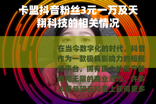 有一种现象引起了不少人的关注,那就是卡盟抖音粉丝3元一万的服务,而天翔科技也在相关领域中有所涉及,卡盟这种模式为那些渴望快速增加抖音粉丝数量的用户提供了一种看似便捷的途径,对于一些个人创作者来说,拥有更多的粉丝意味着他们的作品能够被更多人看到,从而获得更多的点赞、评论和分享,这无疑会极大地满足他们的创作成就感。