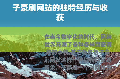 在当今数字化的时代,网络世界充满了各种各样新奇有趣的事物,其中就包括子豪刷网站这样一种独特的网络现象。