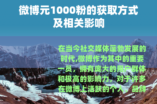 在当今社交媒体蓬勃发展的时代,微博作为其中的重要一员,拥有庞大的用户群体和极高的影响力,对于许多在微博上活跃的个人、品牌或机构来说,粉丝数量是衡量其影响力和价值的重要指标之一,元1000粉的话题也逐渐引起了人们的关注。