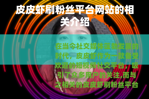在当今社交媒体蓬勃发展的时代,皮皮虾作为一款备受欢迎的短视频社交平台,吸引了众多用户的关注,而与之相关的皮皮虾刷粉丝平台网站也在一定程度上进入了人们的视野。