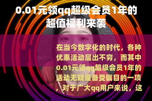 在当今数字化的时代,各种优惠活动层出不穷,而其中0.01元领qq超级会员1年的活动无疑是备受瞩目的一项,对于广大qq用户来说,这是一个不容错过的绝佳机会,可以以极低的成本享受到超级会员带来的众多特权。