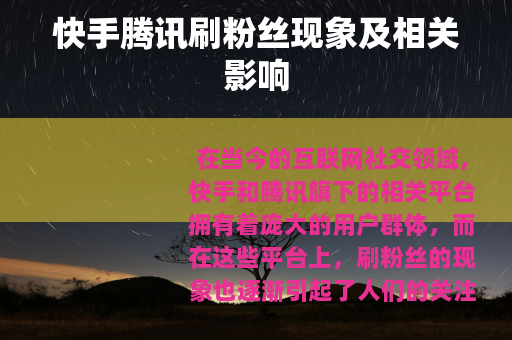 在当今的互联网社交领域,快手和腾讯旗下的相关平台拥有着庞大的用户群体,而在这些平台上,刷粉丝的现象也逐渐引起了人们的关注。