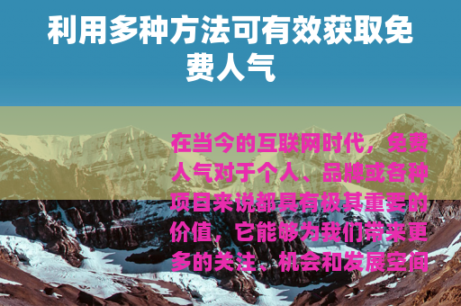 在当今的互联网时代,免费人气对于个人、品牌或各种项目来说都具有极其重要的价值,它能够为我们带来更多的关注、机会和发展空间,是众多人努力追求的目标之一。