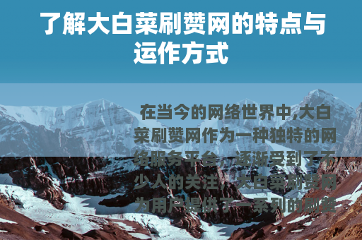 在当今的网络世界中,大白菜刷赞网作为一种独特的网络服务平台,逐渐受到了不少人的关注,大白菜刷赞网为用户提供了一系列的刷赞服务,涵盖了多个领域,包括社交媒体的点赞、评论,视频平台的播放量、点赞数等。