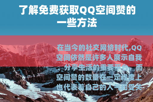 在当今的社交网络时代,QQ空间依然是许多人展示自我、分享生活的重要平台,而空间赞的数量在一定程度上也代表着自己的人气和受关注程度,很多人都希望能够获得更多的赞,让自己的动态更加醒目和受欢迎,幸运的是,存在一些免费获取QQ空间赞的途径。