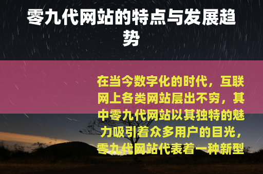 在当今数字化的时代,互联网上各类网站层出不穷,其中零九代网站以其独特的魅力吸引着众多用户的目光,零九代网站代表着一种新型的网络平台模式,它在技术、功能和用户体验等方面都有着显著的特点和优势。