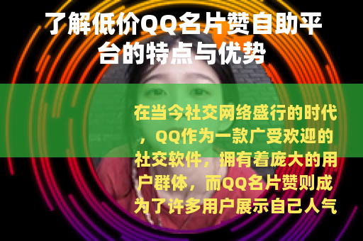 在当今社交网络盛行的时代,QQ作为一款广受欢迎的社交软件,拥有着庞大的用户群体,而QQ名片赞则成为了许多用户展示自己人气和社交活跃度的一种方式,在众多获取QQ名片赞的途径中,低价QQ名片赞自助平台逐渐崭露头角,受到了不少用户的关注。