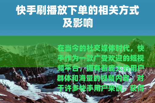 在当今的社交媒体时代,快手作为一款广受欢迎的短视频平台,拥有着庞大的用户群体和海量的视频内容,对于许多快手用户来说,获得更多的播放量是他们所追求的目标之一,这也使得快手刷播放下单的现象逐渐兴起。