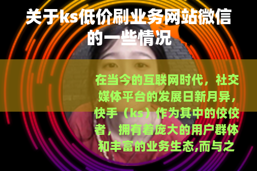 在当今的互联网时代,社交媒体平台的发展日新月异,快手(ks)作为其中的佼佼者,拥有着庞大的用户群体和丰富的业务生态,而与之相关的一些低价刷业务网站微信也在一定程度上受到了部分人的关注。