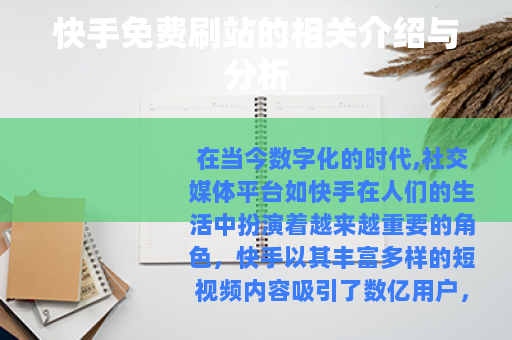 在当今数字化的时代,社交媒体平台如快手在人们的生活中扮演着越来越重要的角色,快手以其丰富多样的短视频内容吸引了数亿用户,成为了一个充满活力和创意的社交空间,而在这个庞大的生态系统中,出现了一种被称为“快手免费刷站”的现象,引起了不少人的关注。