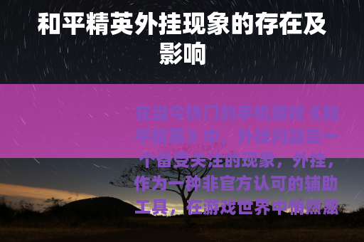在当今热门的手机游戏《和平精英》中,外挂问题是一个备受关注的现象,外挂,作为一种非官方认可的辅助工具,在游戏世界中悄然滋生,给玩家的游戏体验带来了多方面的影响。
