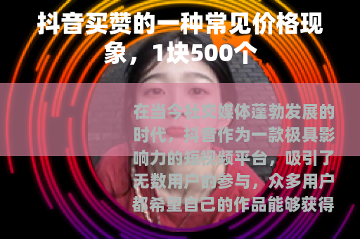 从市场的角度来看,这种1块500个赞的价格设定,在一定程度上反映了市场对于抖音点赞的需求和供给关系,随着抖音用户数量的不断增加,竞争也日益激烈,越来越多的人渴望在平台上脱颖而出,一些人便看到了其中的商机,通过提供买赞服务来满足这部分用户的需求,而1块500个赞的价格,相对来说比较亲民,对于那些预算有限但又想尝试提升自己账号数据的用户来说,具有一定的吸引力。