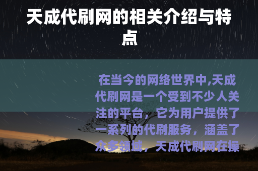 在当今的网络世界中,天成代刷网是一个受到不少人关注的平台,它为用户提供了一系列的代刷服务,涵盖了众多领域。