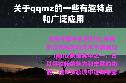 在当今数字化的时代,各种新奇的概念和技术不断涌现,qqmz就是其中之一,它以其独特的魅力和丰富的功能,在众多领域中逐渐崭露头角,吸引了越来越多人的关注和参与。