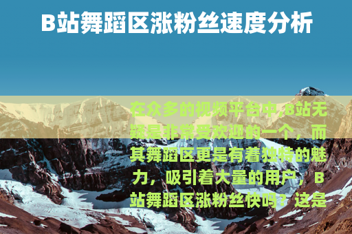 在众多的视频平台中,B站无疑是非常受欢迎的一个,而其舞蹈区更是有着独特的魅力,吸引着大量的用户,B站舞蹈区涨粉丝快吗?这是许多创作者都关心的问题。