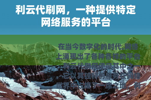 在当今数字化的时代,网络上涌现出了各种各样的平台,利云代刷网便是其中之一,它以其独特的服务在网络世界中占据了一席之地。