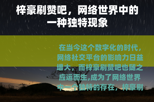 在当今这个数字化的时代,网络社交平台的影响力日益增大,而梓豪刷赞吧也随之应运而生,成为了网络世界中一个独特的存在。