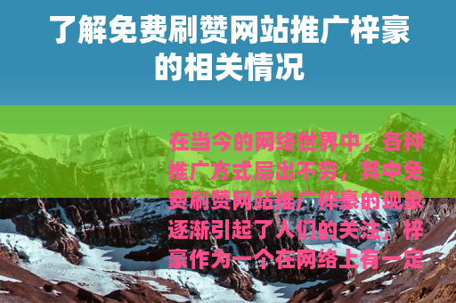 在当今的网络世界中,各种推广方式层出不穷,其中免费刷赞网站推广梓豪的现象逐渐引起了人们的关注,梓豪作为一个在网络上有一定知名度的人物或品牌,其通过免费刷赞网站进行推广的方式有着独特的运营模式和特点。
