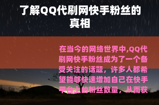 在当今的网络世界中,QQ代刷网快手粉丝成为了一个备受关注的话题,许多人都希望能够快速增加自己在快手平台上的粉丝数量,从而获得更多的关注和影响力,而QQ代刷网似乎提供了这样一条看似便捷的途径。