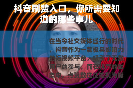 在当今社交媒体盛行的时代,抖音作为一款极具影响力的短视频平台,吸引了无数用户的参与,而在抖音的生态中,点赞数往往被视为衡量一个视频受欢迎程度的重要指标之一,抖音刷赞入口这一话题也逐渐受到了一些人的关注。