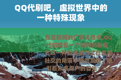 在互联网的广袤天地中,QQ代刷吧是一个独特的存在,它以一种别样的方式在虚拟社交的角落中悄然发展,吸引着众多用户的目光。