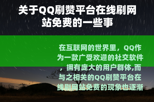 在互联网的世界里,QQ作为一款广受欢迎的社交软件,拥有庞大的用户群体,而与之相关的QQ刷赞平台在线刷网站免费的现象也逐渐引起了人们的关注。