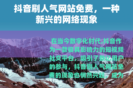 在当今数字化时代,抖音作为一款极具影响力的短视频社交平台,吸引了数亿用户的参与,抖音刷人气网站免费的现象也悄然兴起,成为了众多抖音用户关注的话题。