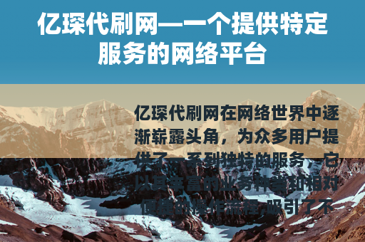 亿琛代刷网在网络世界中逐渐崭露头角,为众多用户提供了一系列独特的服务,它以其丰富的业务种类和相对便捷的操作流程,吸引了不少人的关注。