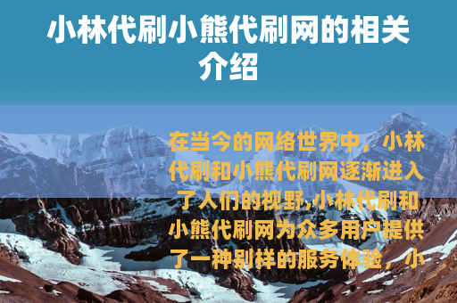 在当今的网络世界中,小林代刷和小熊代刷网逐渐进入了人们的视野,小林代刷和小熊代刷网为众多用户提供了一种别样的服务体验。