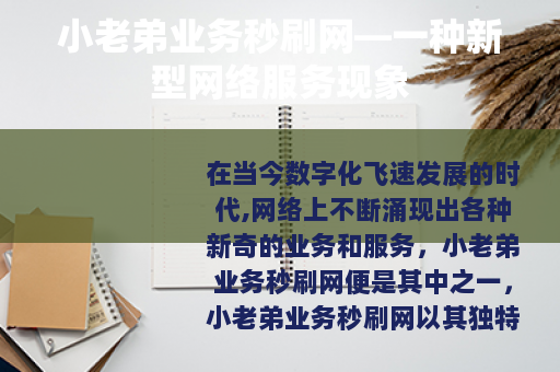 在当今数字化飞速发展的时代,网络上不断涌现出各种新奇的业务和服务,小老弟业务秒刷网便是其中之一,小老弟业务秒刷网以其独特的业务模式吸引了众多用户的关注。