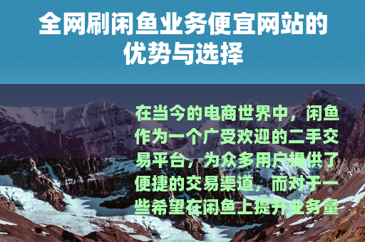全网刷闲鱼业务便宜网站的优势与选择