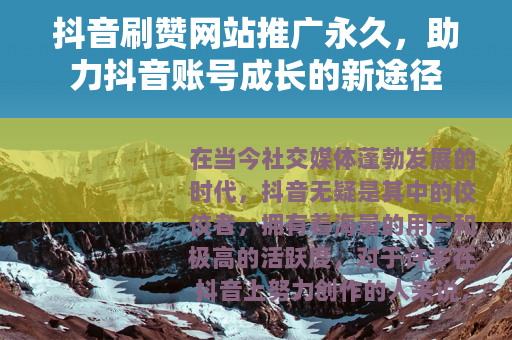 随着社交媒体的不断发展,抖音的影响力也在日益扩大,越来越多的个人和企业开始重视抖音账号的运营,希望通过抖音来推广自己的品牌、产品或服务,在这种情况下,抖音刷赞网站推广永久的重要性也愈发凸显。