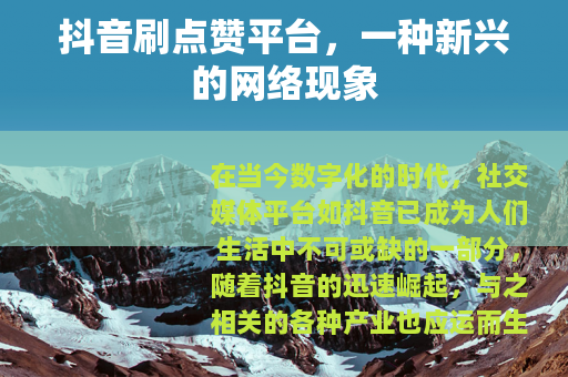 在当今数字化的时代,社交媒体平台如抖音已成为人们生活中不可或缺的一部分,随着抖音的迅速崛起,与之相关的各种产业也应运而生,其中抖音刷点赞平台就是一个备受关注的现象。