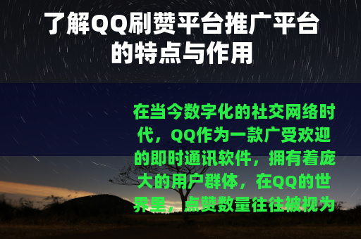 在当今数字化的社交网络时代,QQ作为一款广受欢迎的即时通讯软件,拥有着庞大的用户群体,在QQ的世界里,点赞数量往往被视为一种受欢迎程度的象征,于是QQ刷赞平台推广平台应运而生。