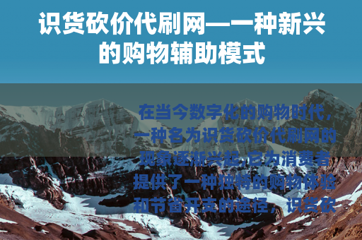 在当今数字化的购物时代,一种名为识货砍价代刷网的现象逐渐兴起,它为消费者提供了一种独特的购物体验和节省开支的途径。