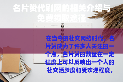 在当今数字化的时代,社交网络已经成为人们生活中不可或缺的一部分,名片赞作为社交网络中的一个重要元素,也越来越受到人们的重视,免费领取名片赞的代刷网的出现,为人们在社交网络中的自我展示和社交互动提供了新的途径和方式。