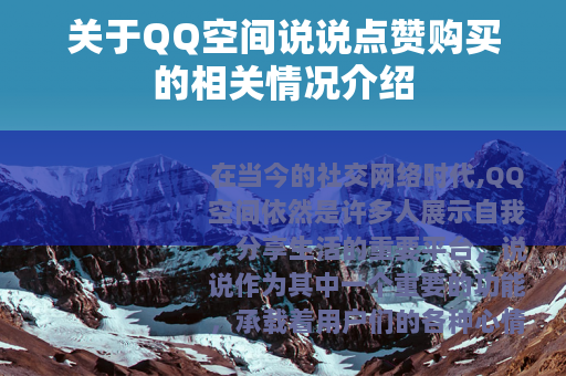 在当今的社交网络时代,QQ空间依然是许多人展示自我、分享生活的重要平台,说说作为其中一个重要的功能,承载着用户们的各种心情、经历和想法,而说说的点赞数量,在一定程度上也成为了衡量其受欢迎程度和关注度的一个指标,QQ空间说说点赞购买的现象应运而生。