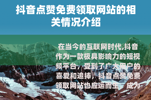 在当今的互联网时代,抖音作为一款极具影响力的短视频平台,受到了广大用户的喜爱和追捧,抖音点赞免费领取网站也应运而生,成为了一些用户关注的焦点。
