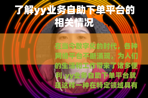 在当今数字化的时代,各种网络平台不断涌现,为人们的生活和工作带来了诸多便利,yy业务自助下单平台就是这样一种在特定领域具有一定影响力的平台。