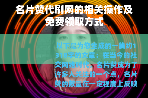 在当今的社交网络时代,名片赞成为了许多人关注的一个点,名片赞的数量在一定程度上反映了一个人的社交活跃度和受欢迎程度,而免费领取名片赞代刷网的出现,为不少人提供了一种增加名片赞数量的途径。