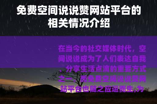 在当今的社交媒体时代,空间说说成为了人们表达自我、分享生活点滴的重要方式之一,而免费空间说说赞网站平台也随之应运而生,为广大用户提供了一种增加说说热度和关注度的途径。