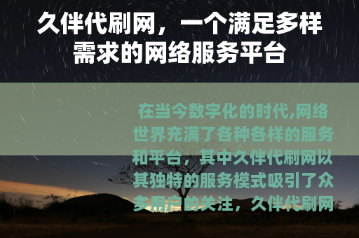 在当今数字化的时代,网络世界充满了各种各样的服务和平台,其中久伴代刷网以其独特的服务模式吸引了众多用户的关注。